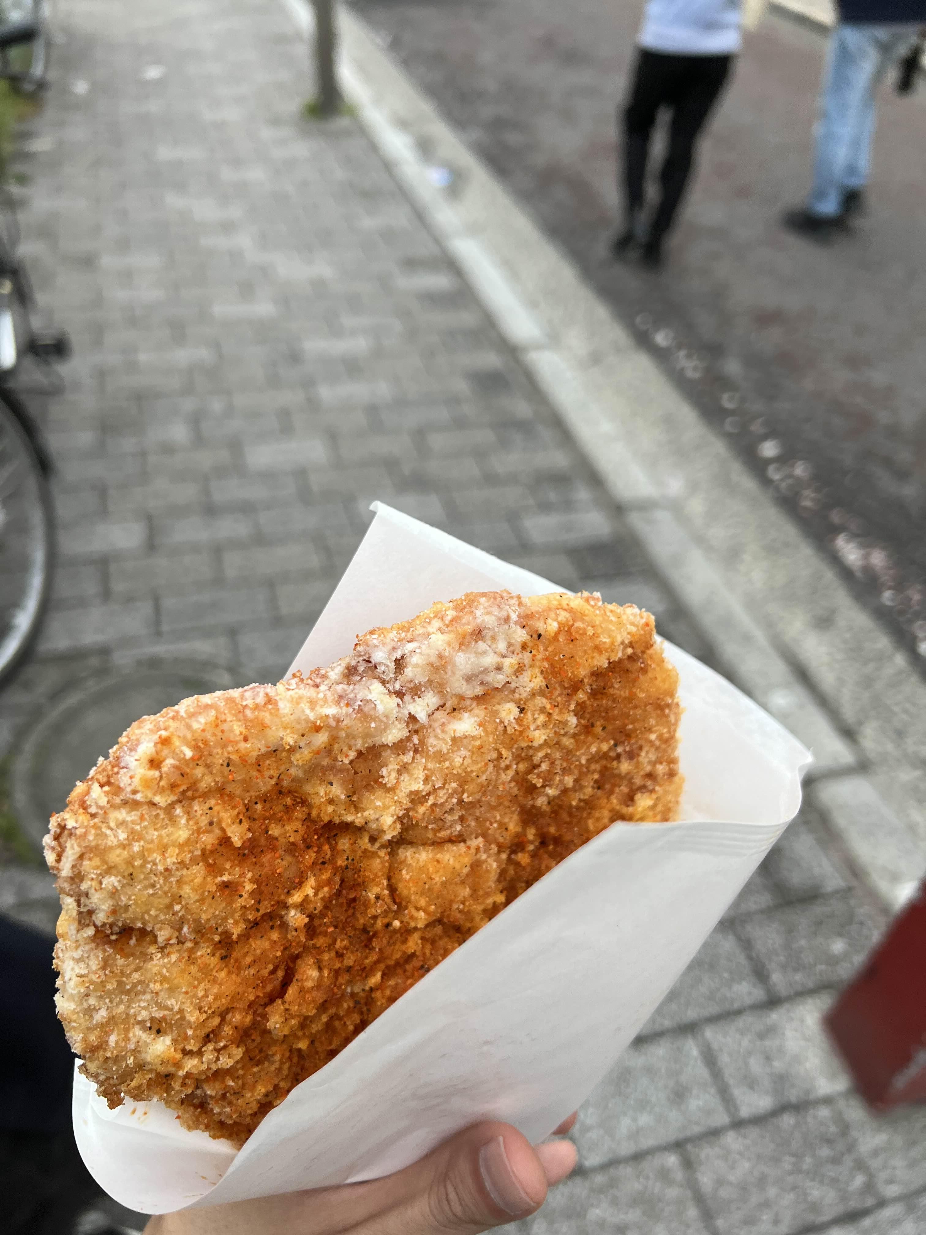 롯데리아 지파이생각했는데 그냥 지파이가 공룡크기만해사 저거 절반도 못먹구 버렸다 맛은 롯데리아 지파이가 좀 더 맛있던 느낌? 대만이나 중국에서 지파이는 먹어본적이 없어 비교는 못하겠으나 여기서 먹었던 지파이는 조금 띡딱하고 그냥 아~ 지파이 이런 느낌.