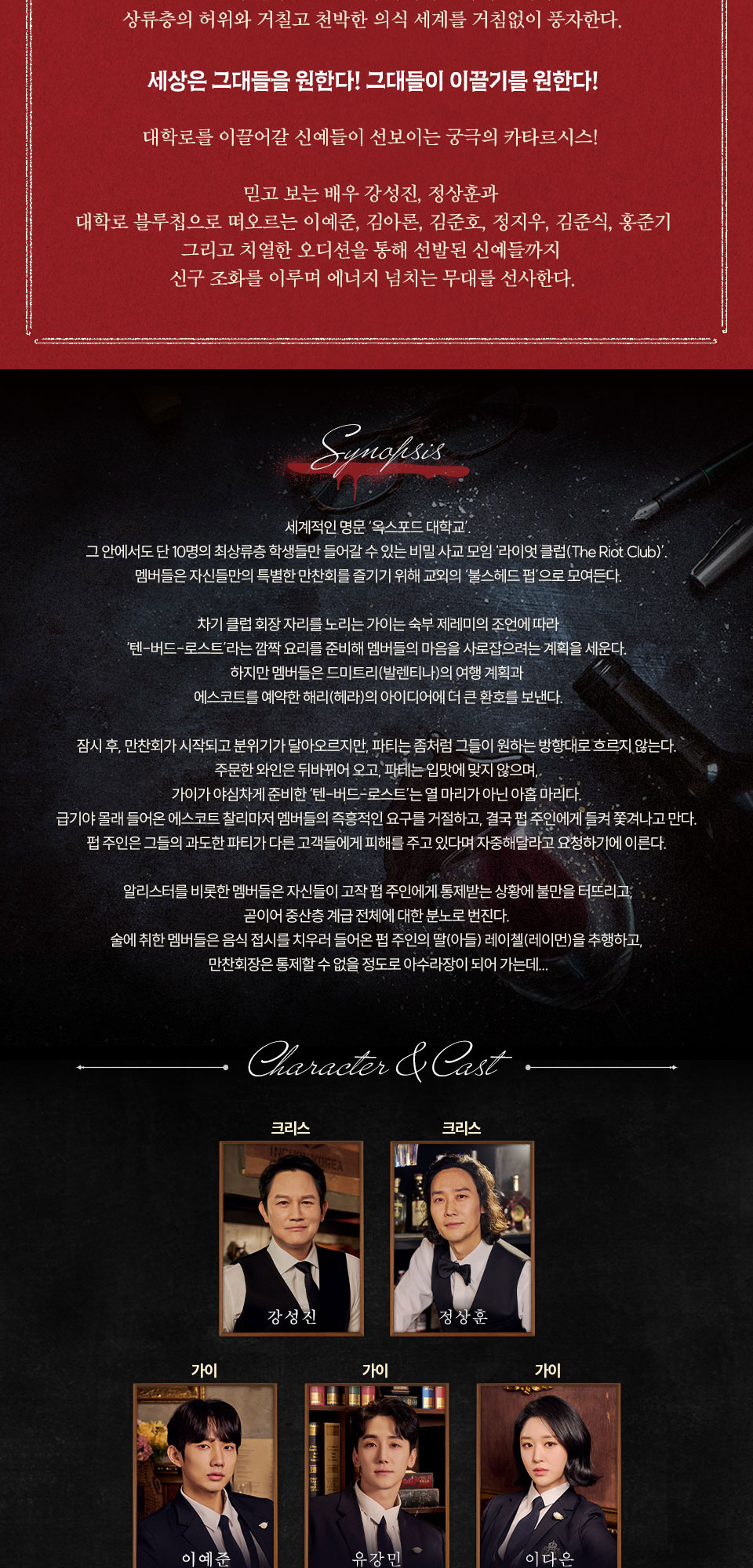 이 연극을 보려고 예약한 이유는 네이버 검색을 했는데 가장 먼저 나오는 연극이었고 줄거리도 구미를 좀 당기기때문에 볼만하다는 생각이 들었다. 캐스팅을 보니까 또 이제 곧 마지막 공연인것도 이유가 있긴하고, 즐거운 시간이 되었으면 좋겠다.