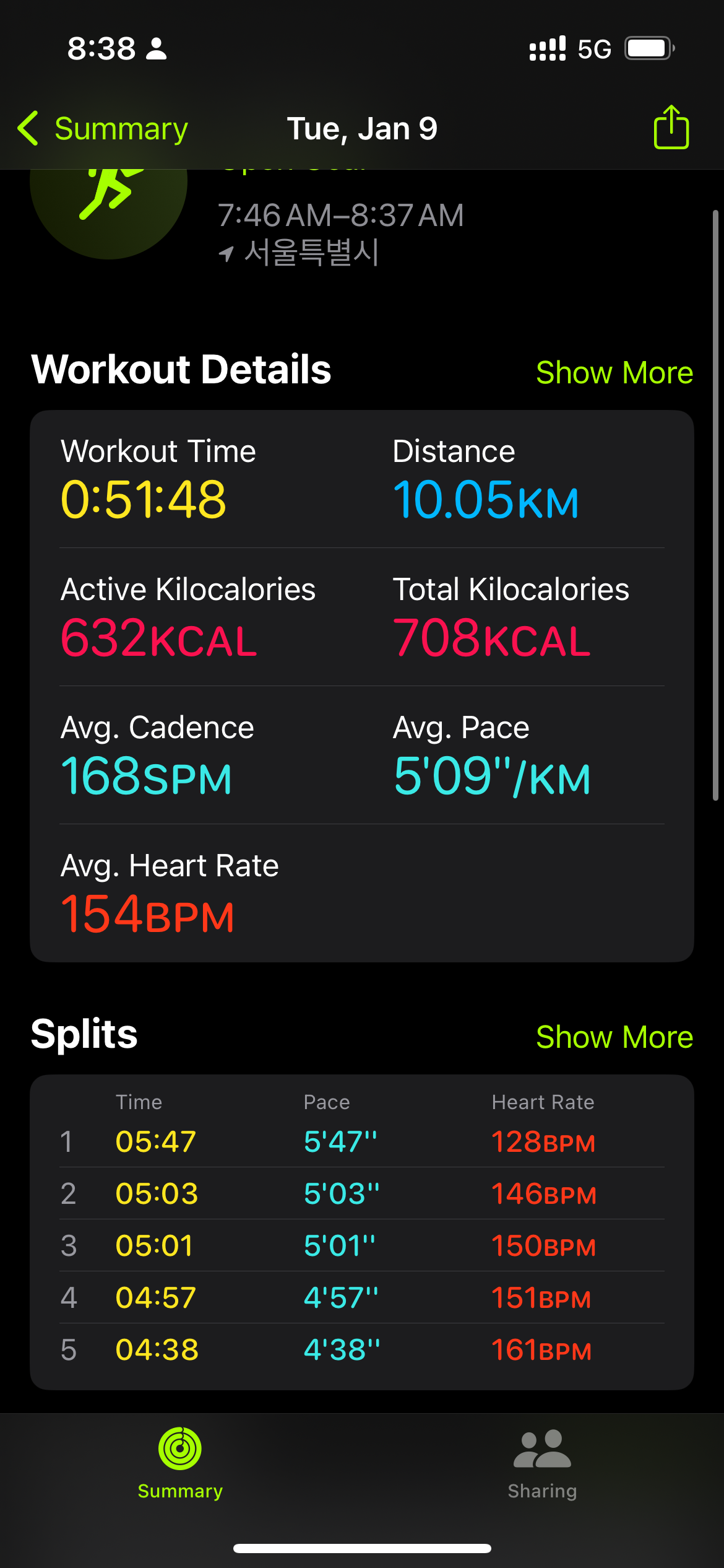 10km 51:48 을 도착했다