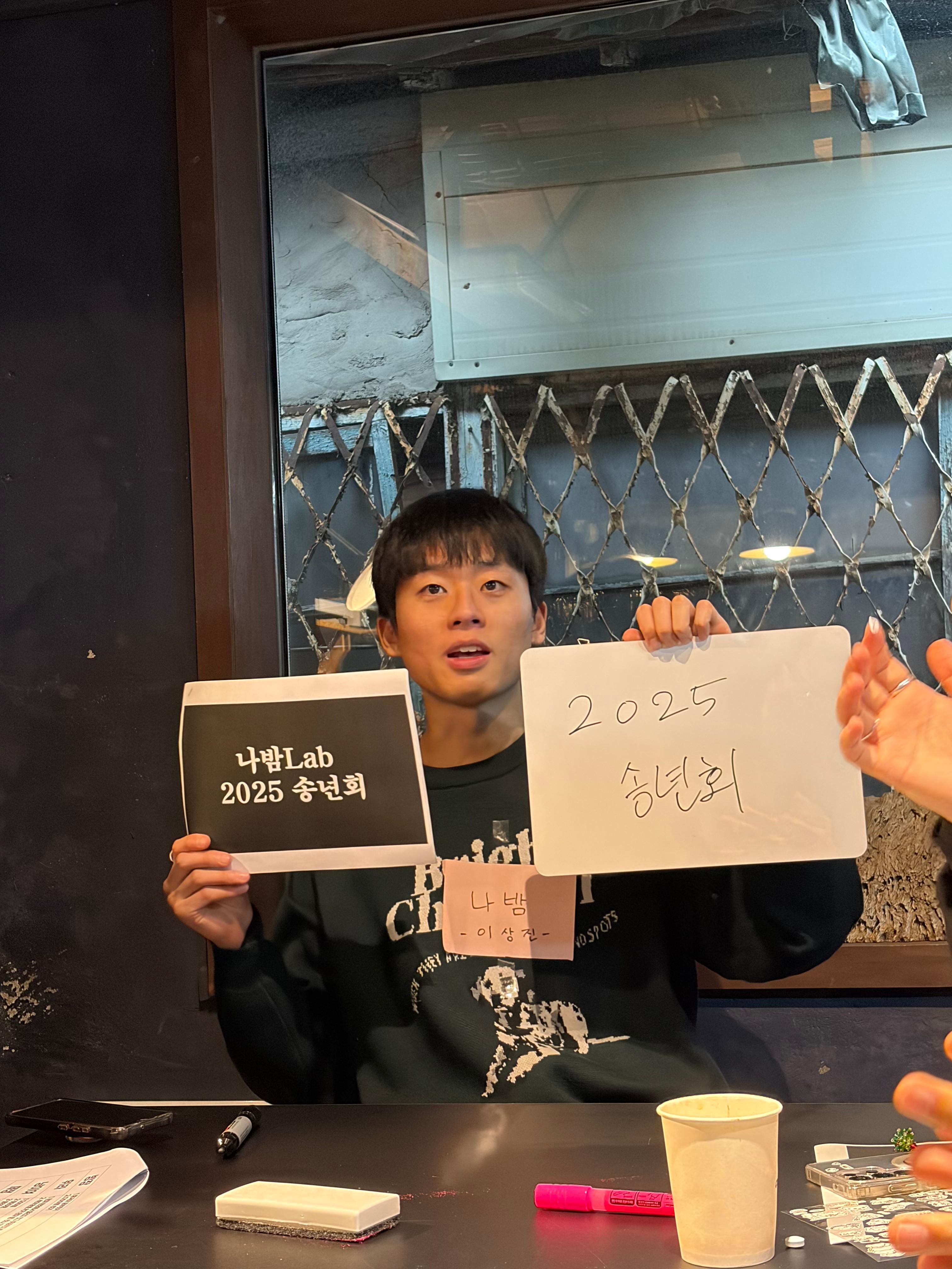 2025년도 10일도 채 안남은 이 시점, 구색을 갖췄던 1회 송년회는 2023년 12월 15일에 2회 송년회는 2024년 12월 14일에 금년 송년회는 2025년 12월 13일에 진행이 되었다. 사실 처음보다는 이제 좀 어느정도 형태를 갖추고 참여를 계속 하시는 분들은 계속 해주시는 분들도 있고 새로 오신분도 있고 재밌게 진행이 잘 되었던 거 같다. 한 해를 마무리 하면서 나밤Lab 사람들과 같이 교류를 해가며 목표를 공유하기도 하고 얘기해보기도 하는게 재밌기도 하고 항상 새롭다.