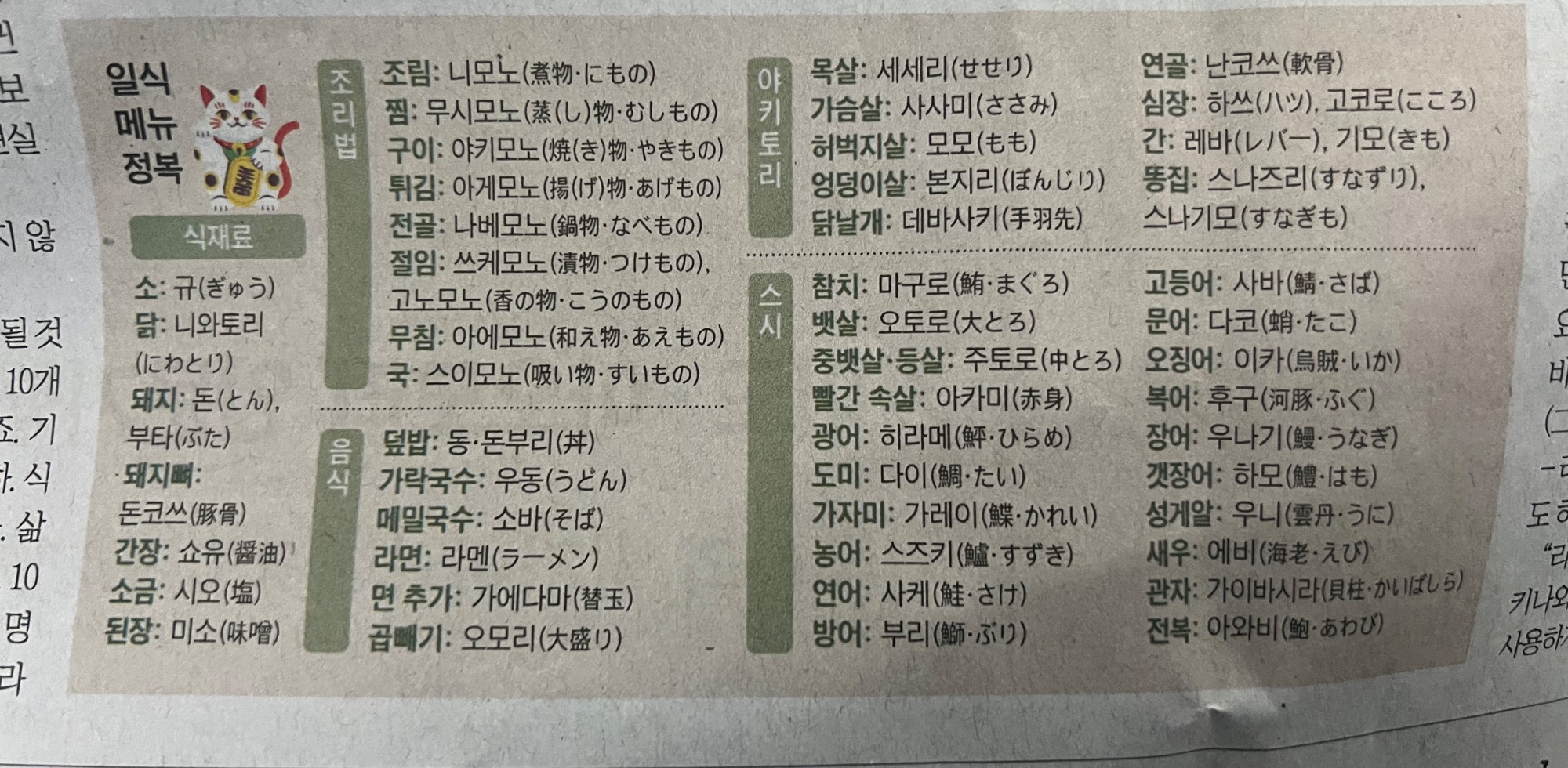 일본어 메뉴 팁
