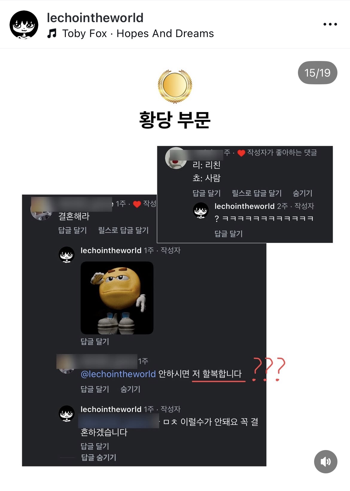 계속 보는 인스타 툰 작가분들이 있는데, 할배님, 리쵸의세상님, 복면만화님 그리고 과학고 썰 푸는 분(이야기가 맛깔남)
