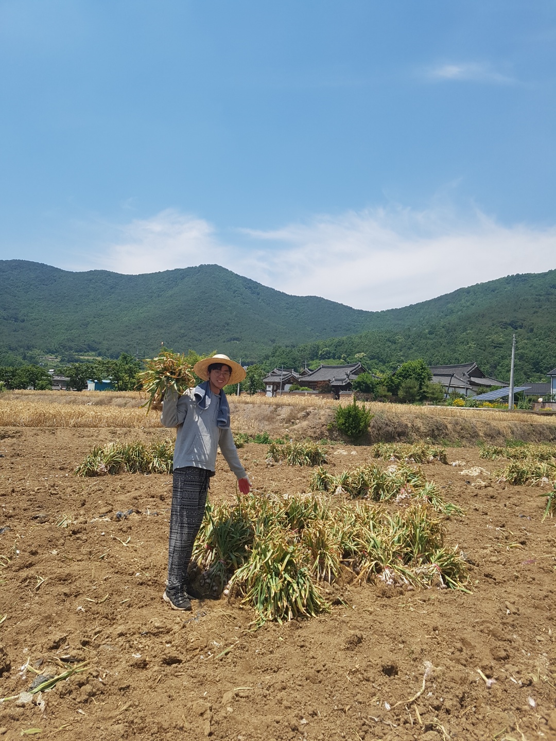 2일차: 마늘 밭에 있는 마늘들 뽑고 뿌리에 묻어있는 흙들 정리