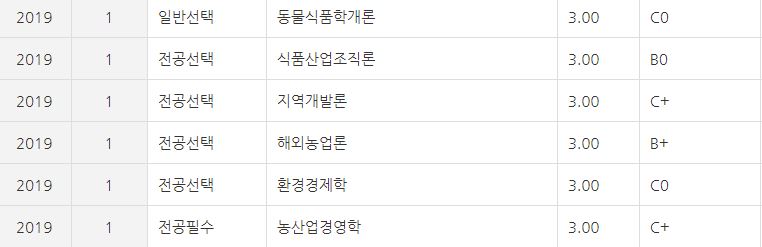 2019학년도 1학기 학점