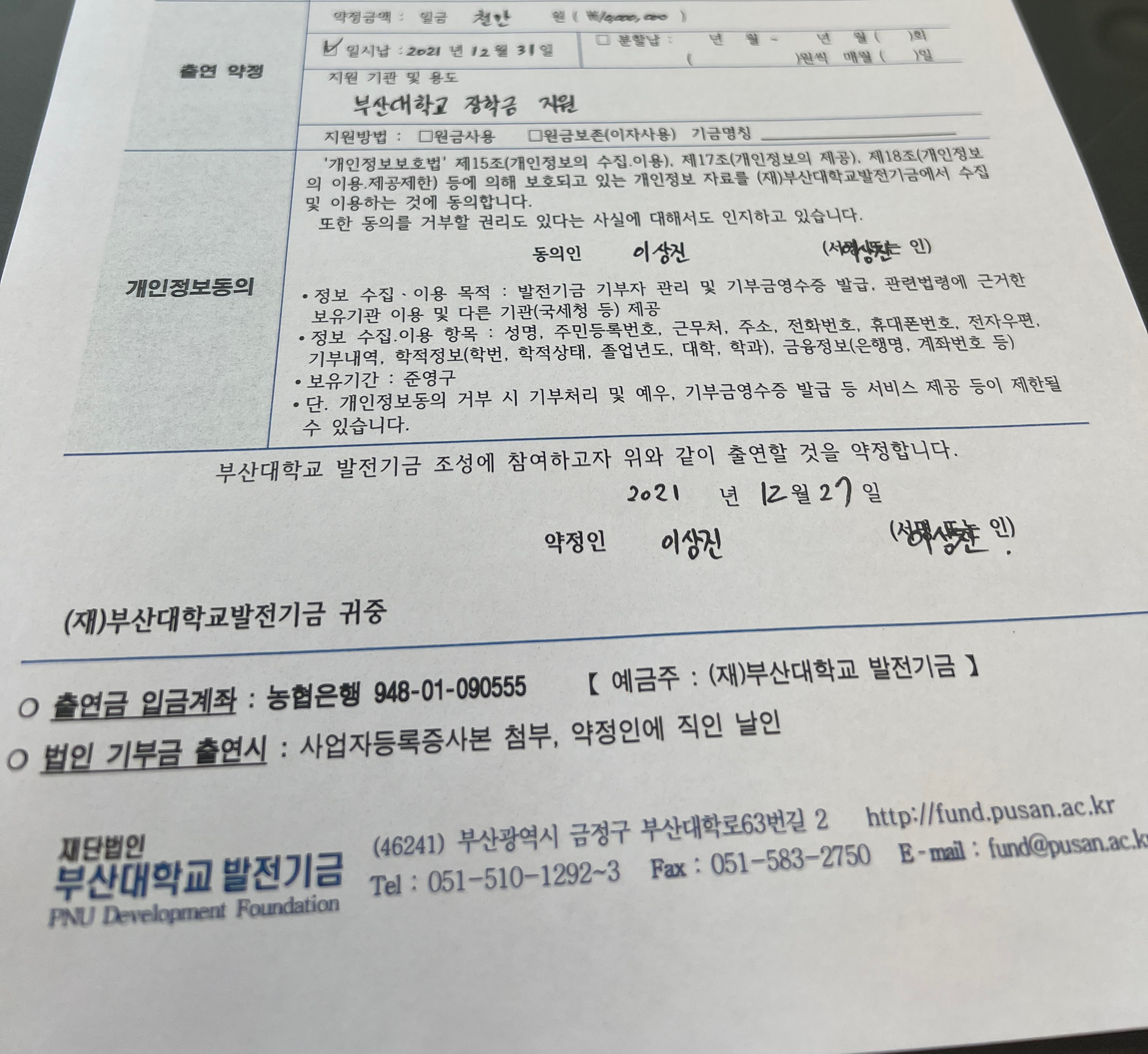 부산대에 천만원 기부했습니다.
