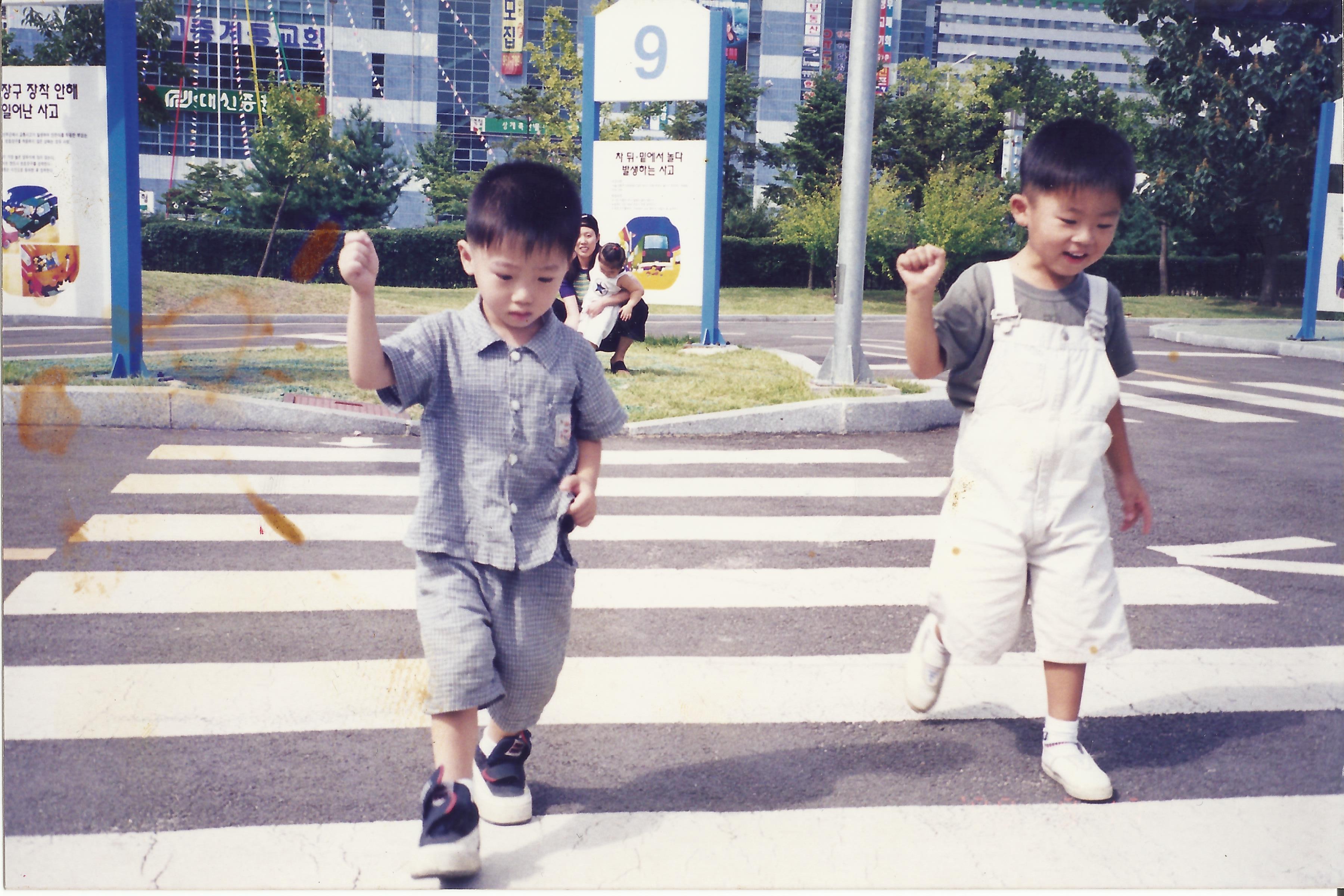 횡단보도 걷는 사진