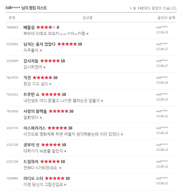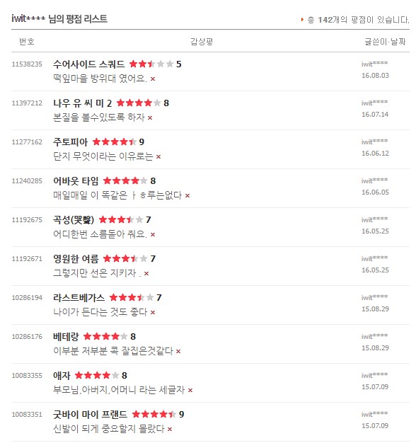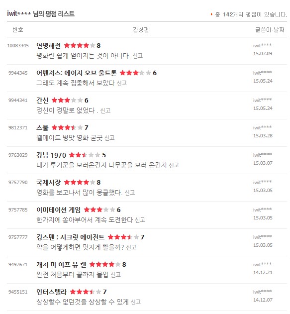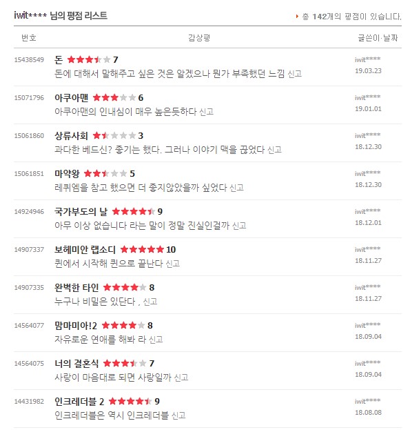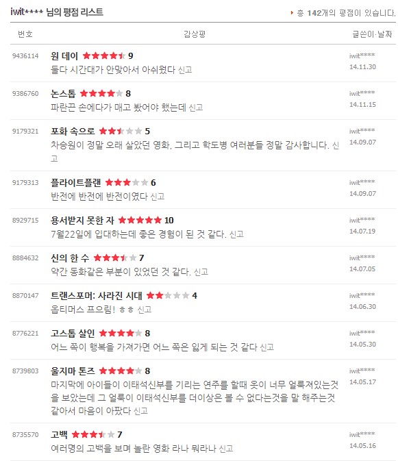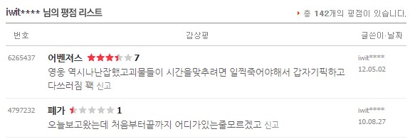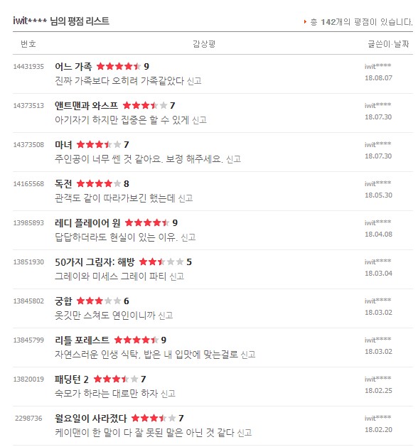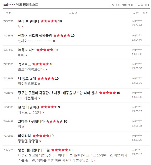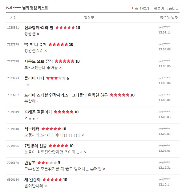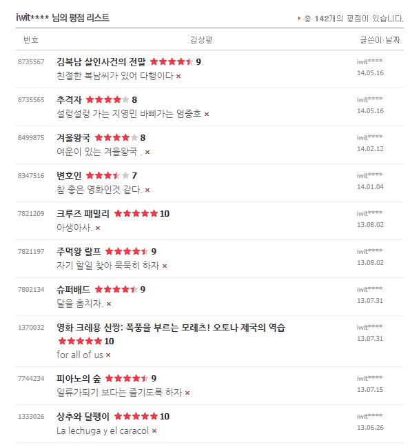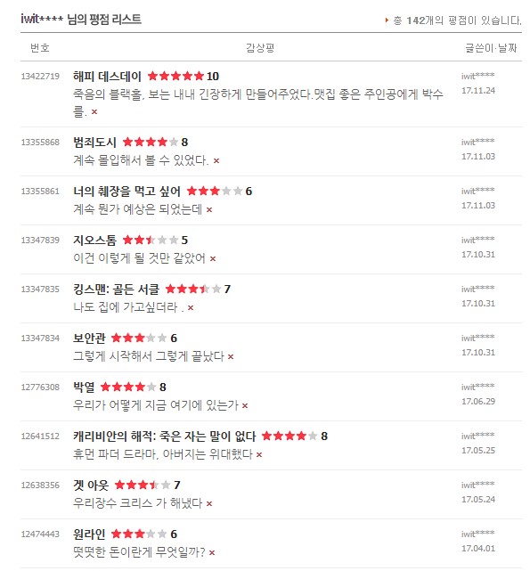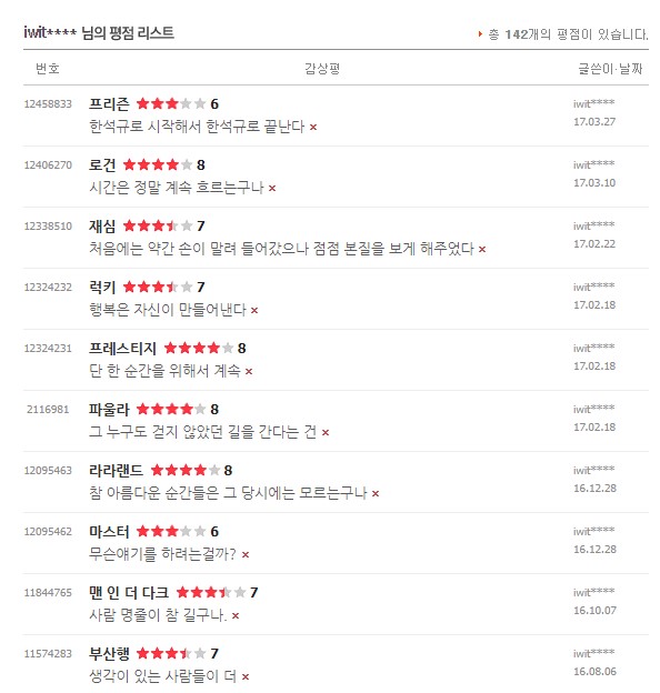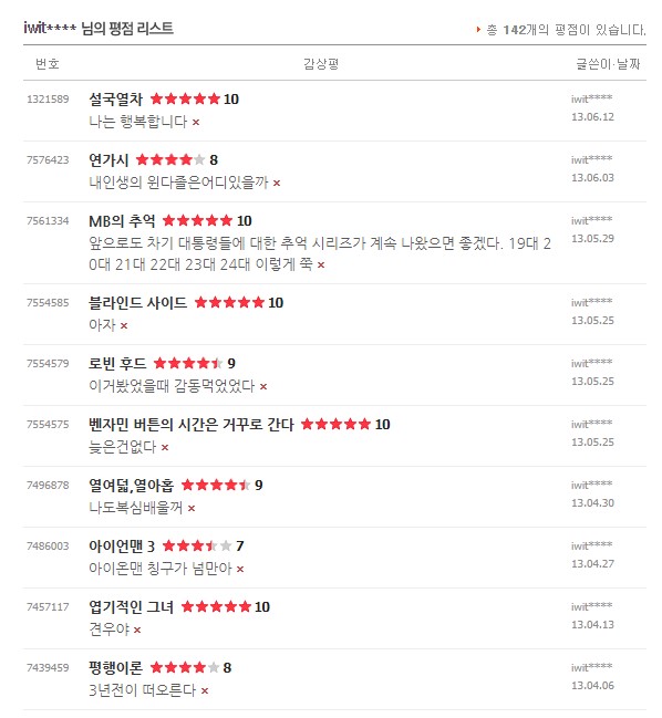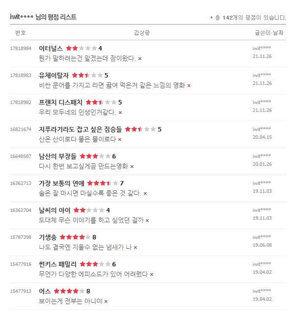 처음 평점을 남겼던 건 2010년 이고 마지막으로 본건 2021년 11월 경이었다.